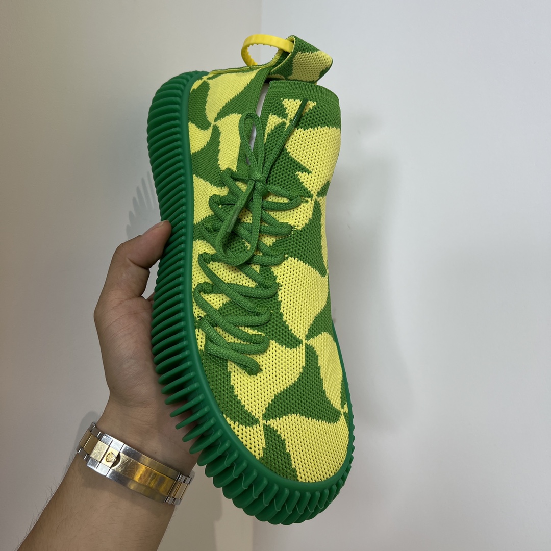 • Bottega Veneta Men’s Ripple Wavy Triangle Pattern Slip-On Tech Knit Sneakers Green And Yellow For Men 690112