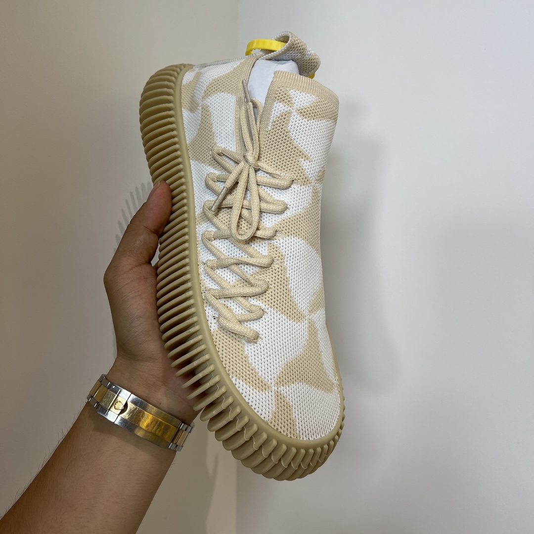 • Bottega Veneta Men’s Ripple Wavy Triangle Pattern Slip-On Tech Knit Sneakers White And Beige For Men 690112