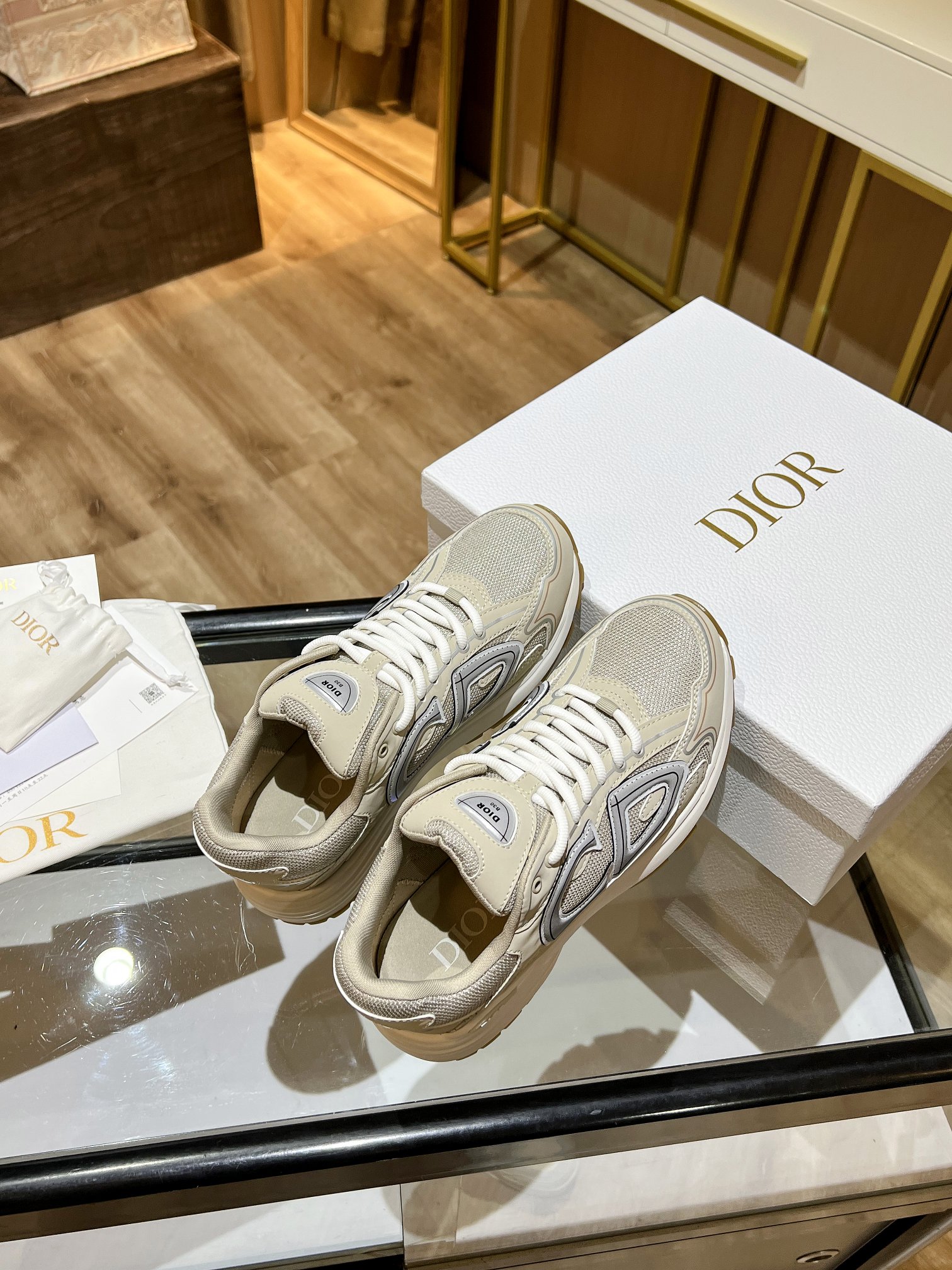 The B30 sneaker has become a new House essential distinguished by its modern and sporty silhouette. Crafted in white mesh and technical fabric, it is enhanced by a reflective ‘CD30’ signature with a graphic aesthetic. The B30 also features silver-tone ‘DIOR B30’ and ‘CD30’ signatures on the tongue and the back of the sneaker. A sculpted and ultra-lightweight rubber outsole spotlights various hallmark details while an elastic interior provides optimal comfort. The B30 sneaker will complete any casual outfit.