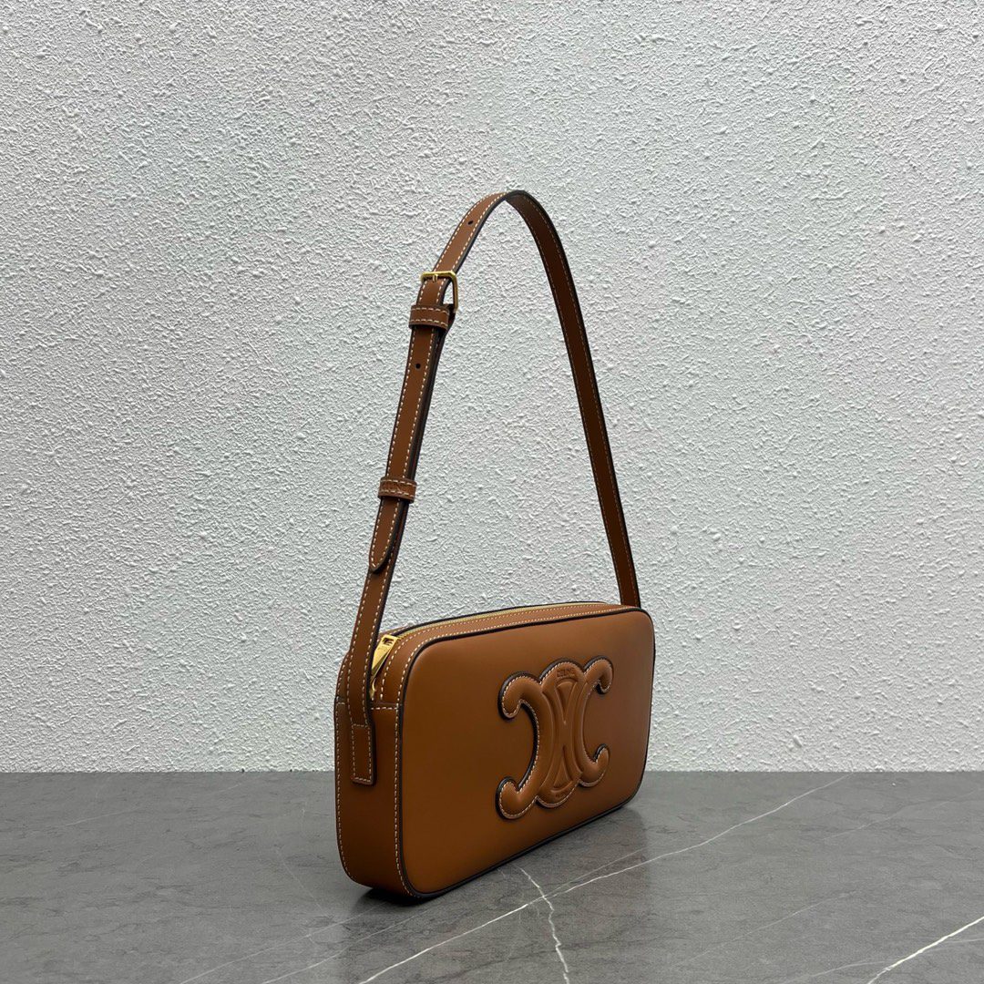 Celine Camera Shoulder Bag Cuir Triomphe Brown For Women 10in/26cm 199183DU3.04LU