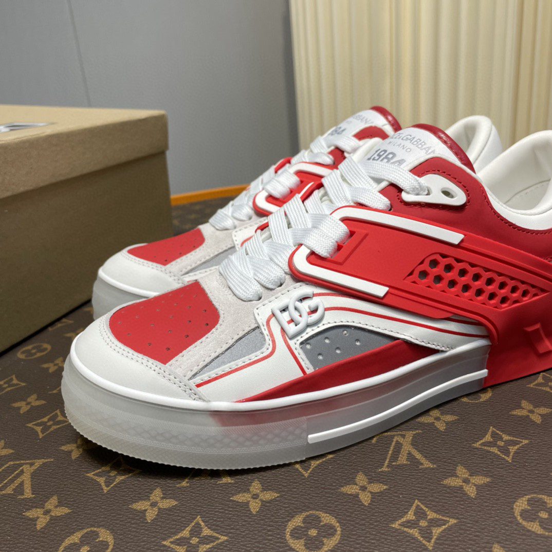 Dolce & Gabbana Mixed-Material Custom 2.Zero Sneakers White/Red For Men DG Shoes