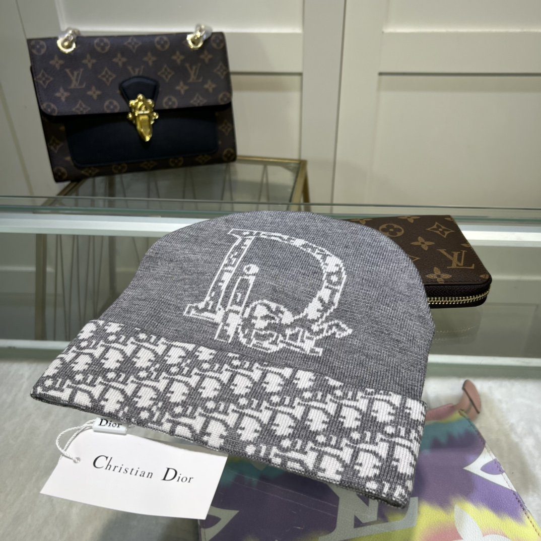 Dior Pompom Beanie In Grey