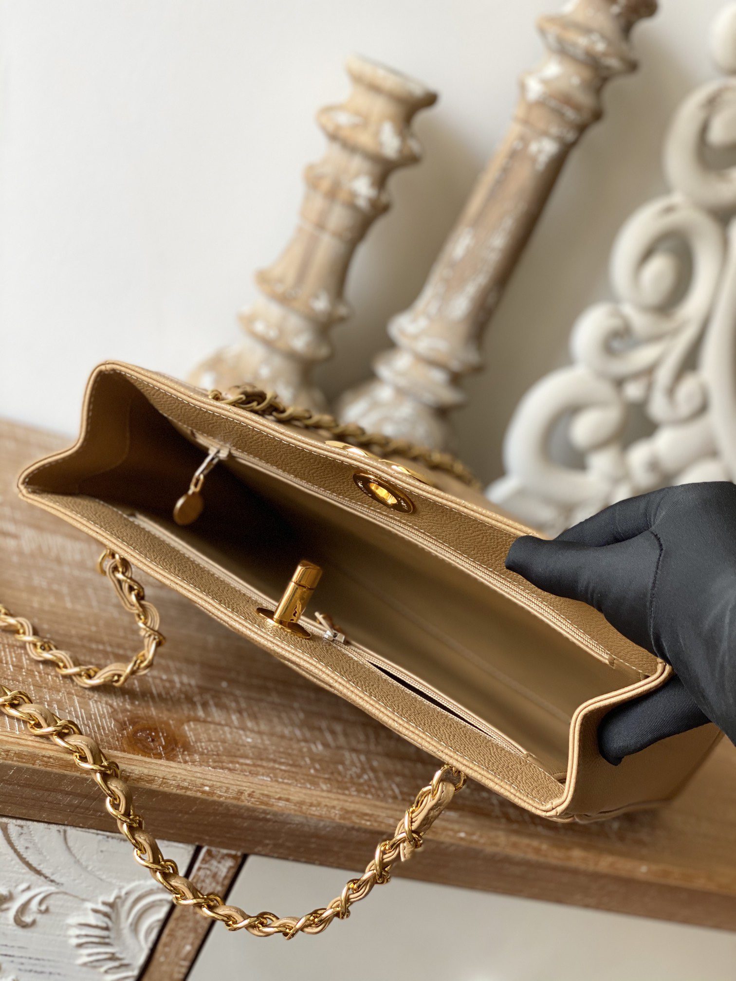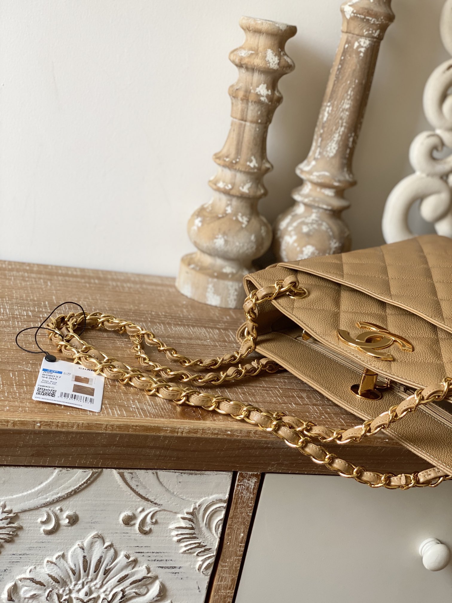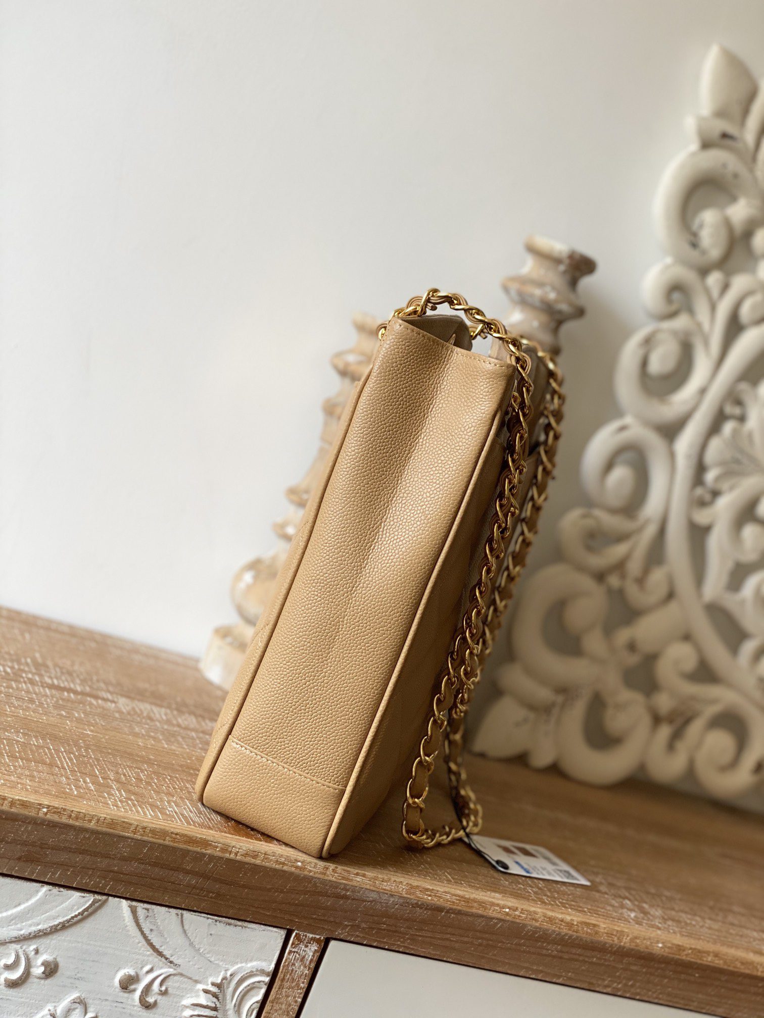 Chanel Vintage Beige Large Quilted Caviar Tote Bag For Women 28cm/11in
