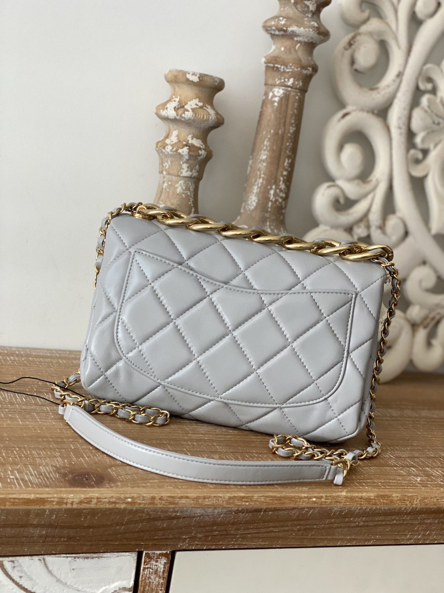 Chanel Large Flap Grey Bag For Women 23cm/9in
