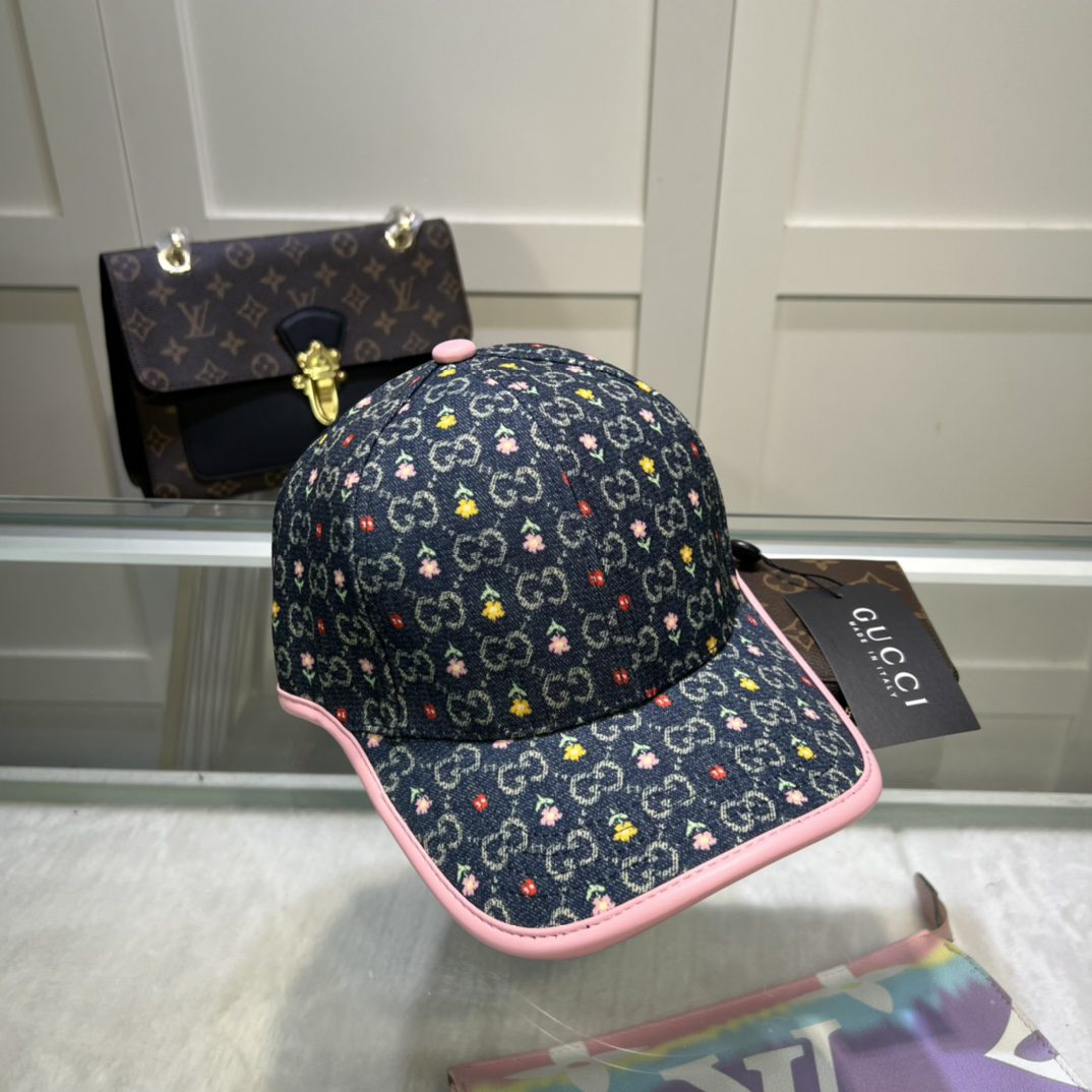 GUCCI Baseball Hat With Floral Black Gucci Hat