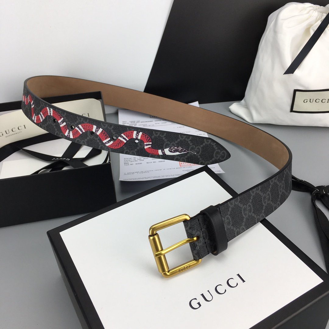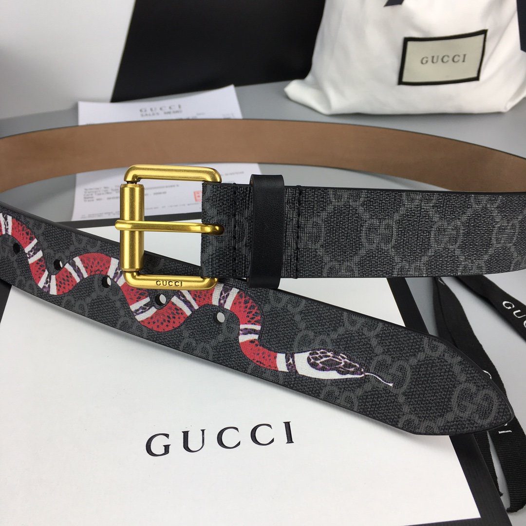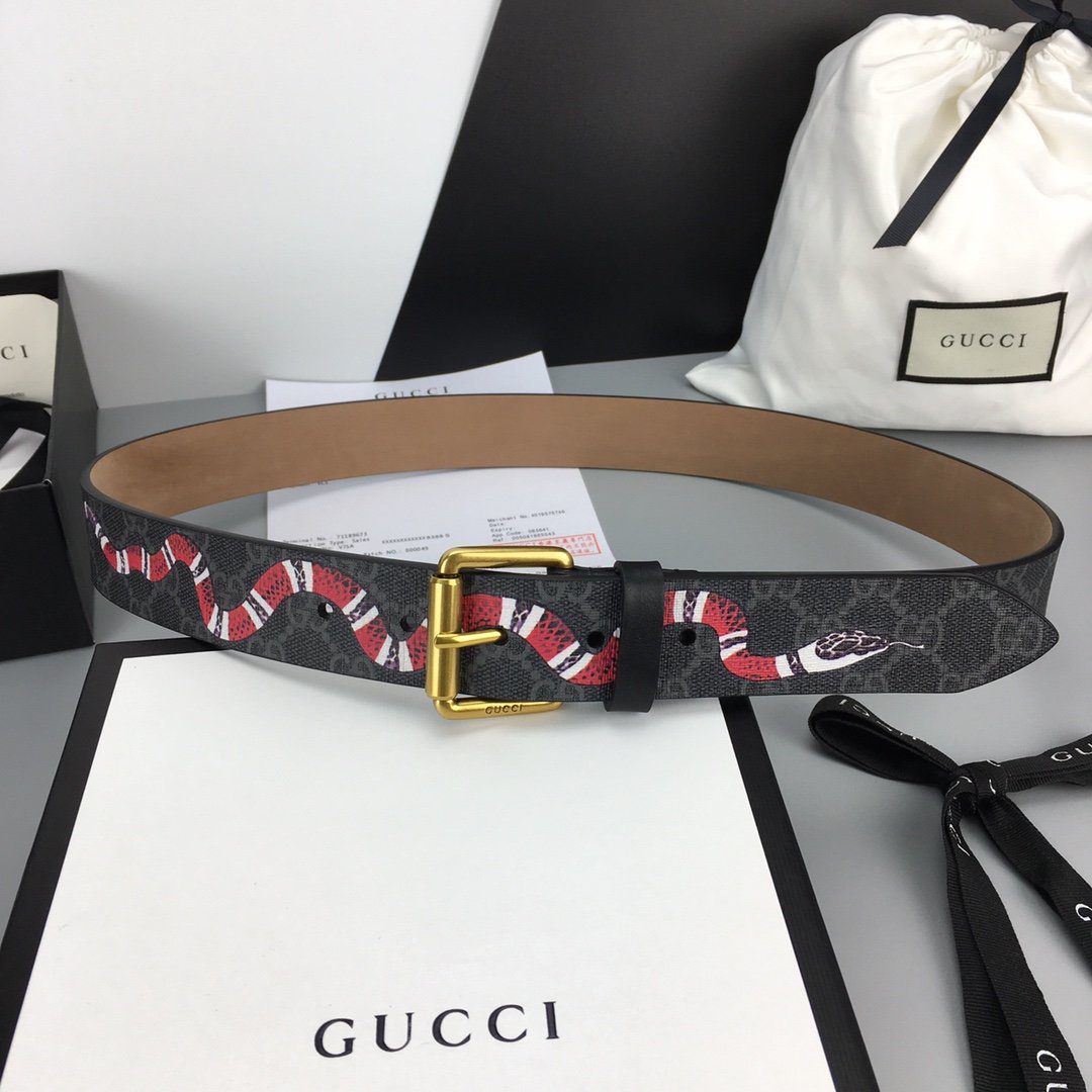 GUCCI Belt With Kingsnake Print Black/Grey Gucci Supreme For Women, Women Belt 434520 K5O1N 1087