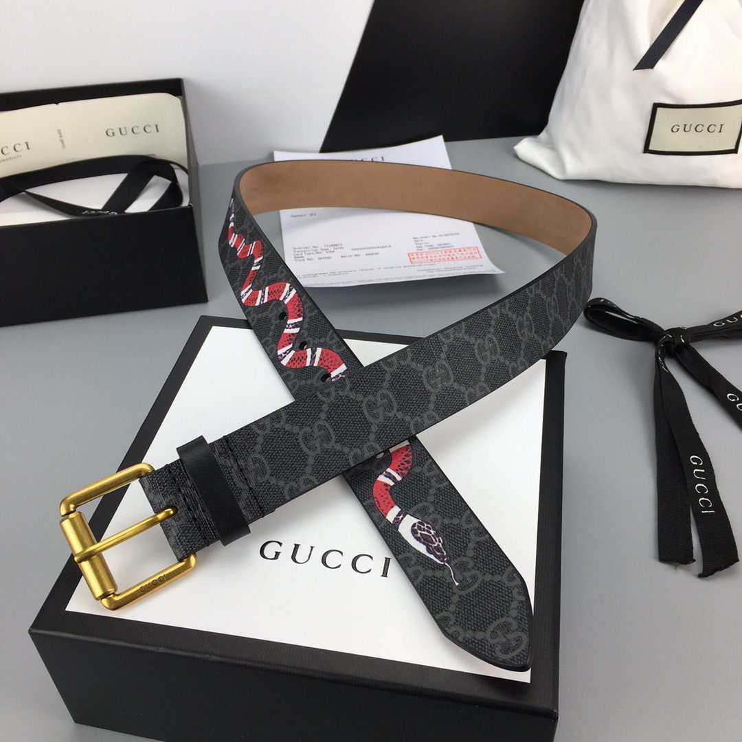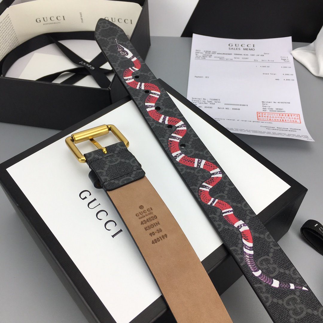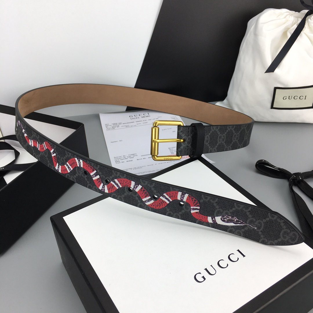 GUCCI Belt With Kingsnake Print Black/Grey Gucci Supreme For Women, Women Belt 434520 K5O1N 1087
