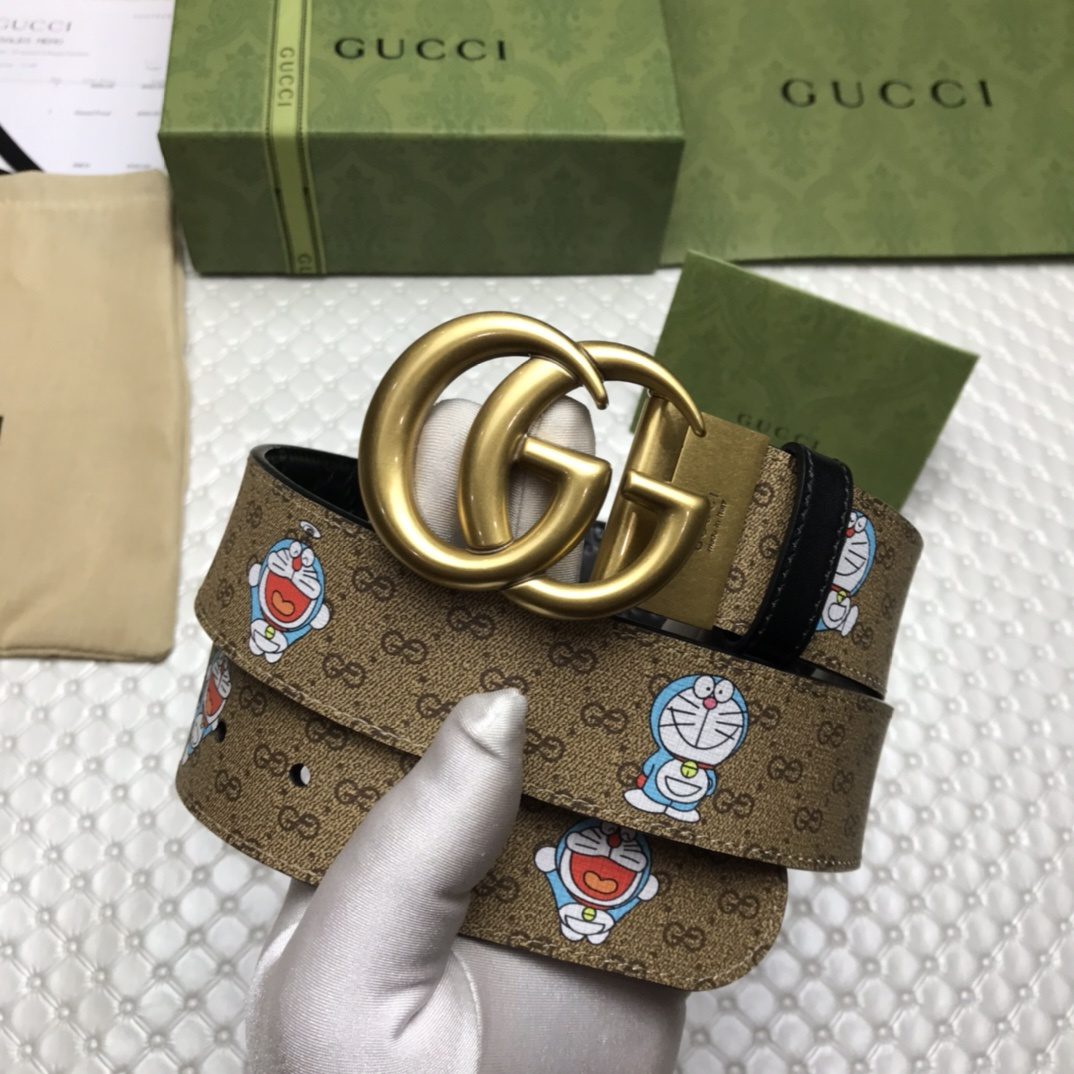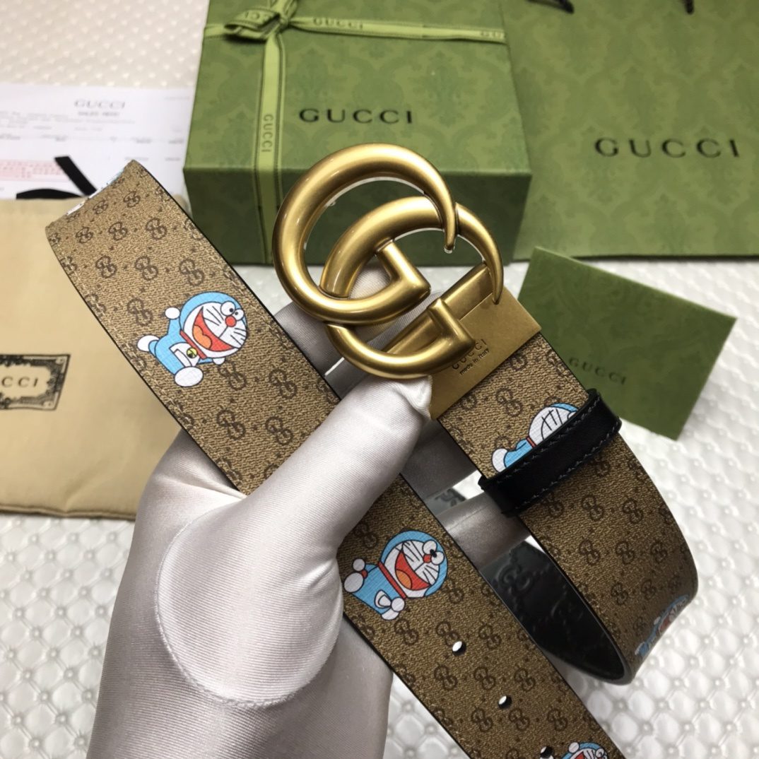 • GUCCI Supreme Belt With Double G Buckle Doreamon Beige/Ebony Gucci Supreme Canvas For Women, Women Belt