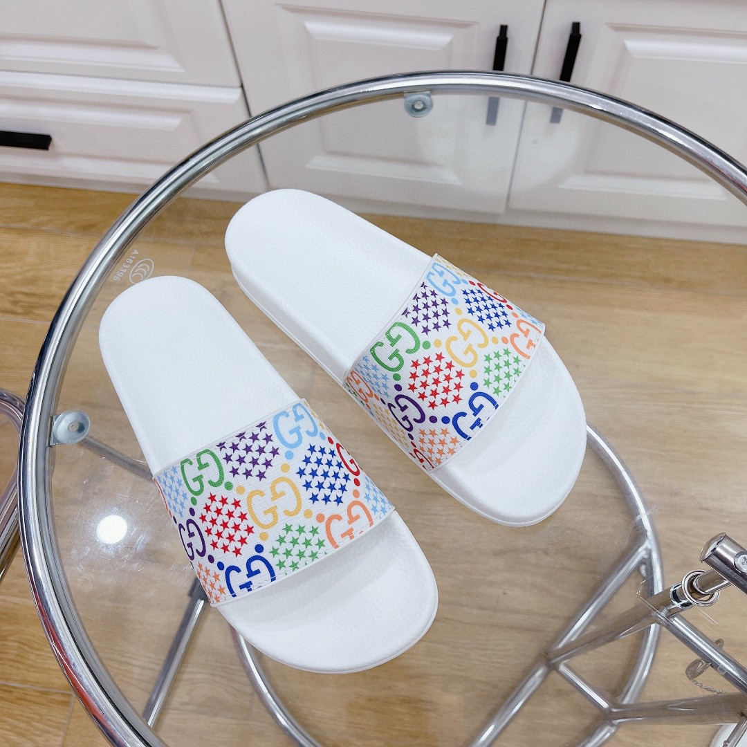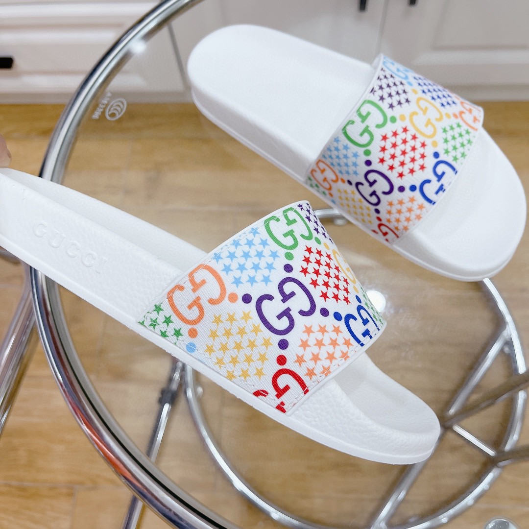 Gucci Men’s Gucci Slide Sandal With Stars White For Men 407345