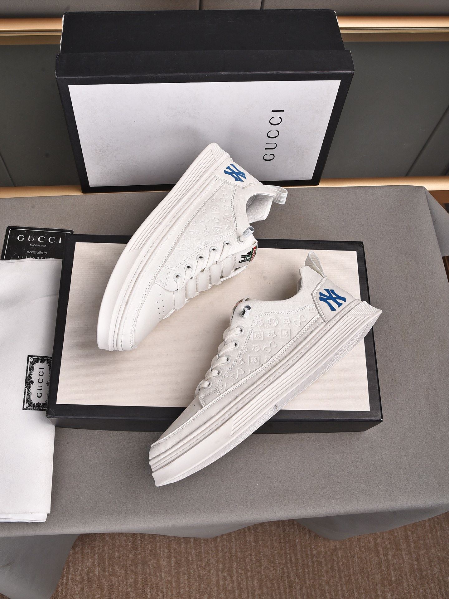 Gucci Men’s Pattern Embossing Sneakers With NY Blue Print White For Men