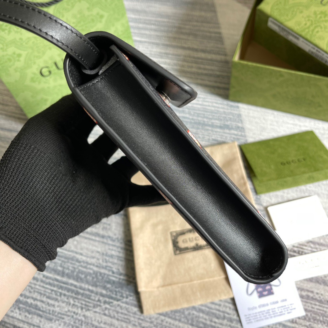 The mini bag is introduced within a line of accessories and ready-to-wear presented for Pre-Fall 2020 made from recycled materials and trims, supporting the House’s commitment to sustainability. Gucci Off The Grid is the first collection from Gucci Circular Lines a concept created to support the House’s vision for circular production. Designed for those mindful of their environmental impact, Gucci Off The Grid uses recycled, organic, bio-based and sustainably sourced materials. Regenerated nylon, crafted using recycled sewing thread and trims displays the Gucci pattern against an opaque background in back