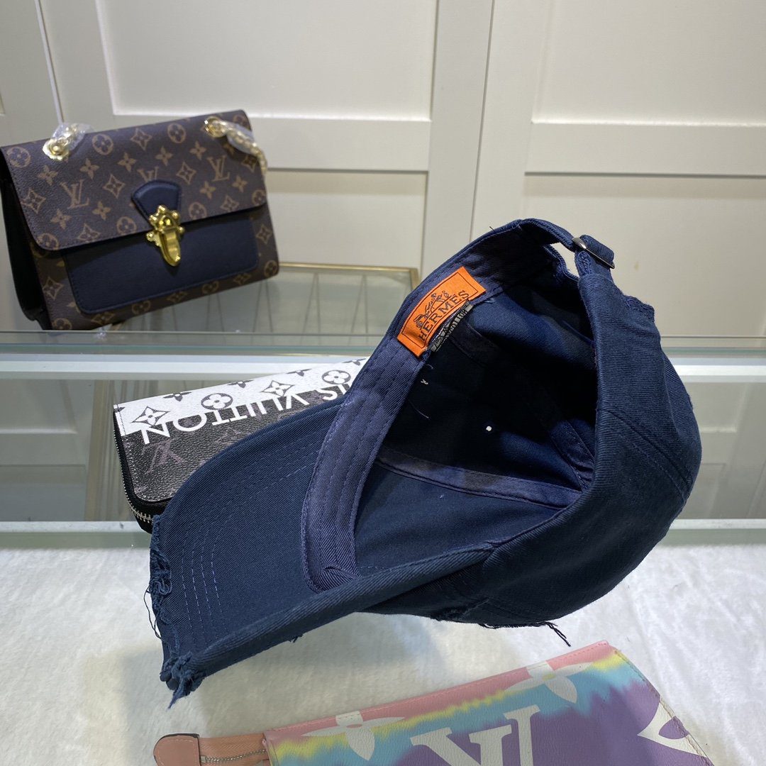 Hermes Davis H Primavera Cap Dark Blue Hermes Cap