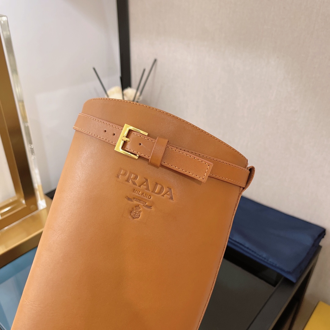 Prada 30 Logo-Embossed Knee Boots Brown For Women Prada 1W175M_34A_F0046_F_D030