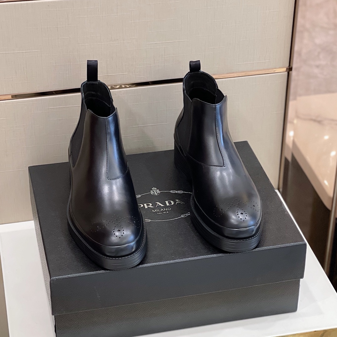 Prada Brushed Chelsea Boots Black For Men 1.8in/45mm Prada