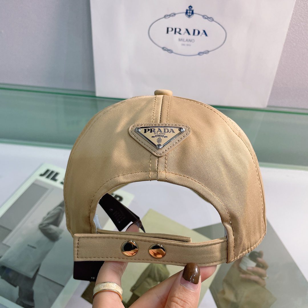 The memory of past summers inspires this drill baseball cap with Prada’s iconic triangle logo appearing . Celebrating freedom and individuality, colors and styles blend to create a contemporary, composite collection with archetypes of beach imagery.