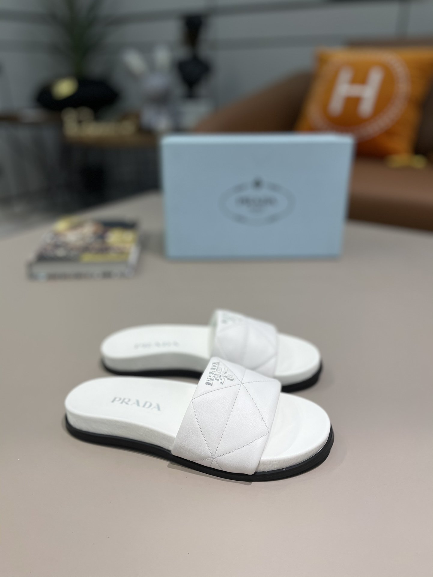 Prada Embossed Logo Quilted Slides White For Women Prada