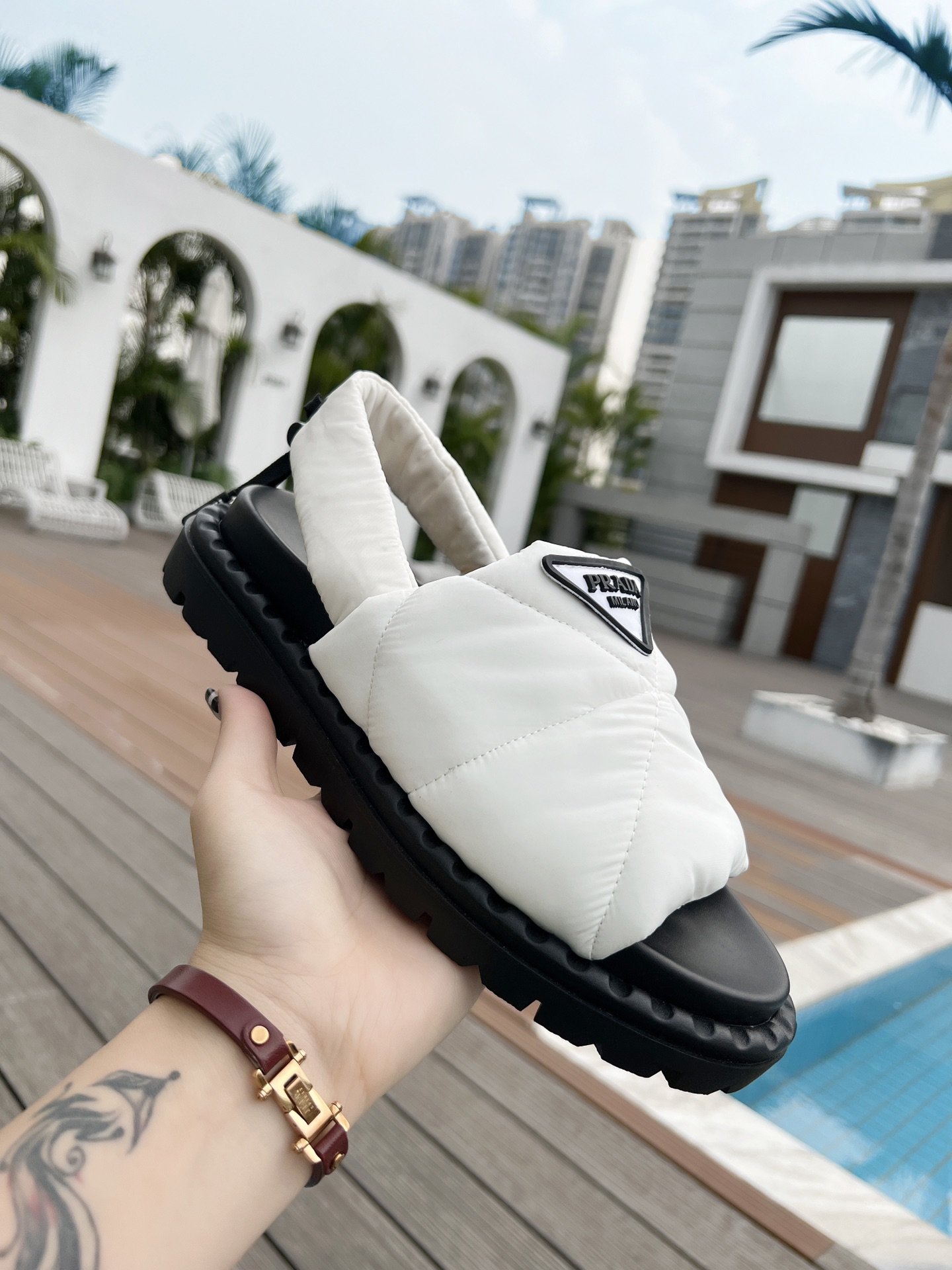 Prada Padded Nylon Sandals White For Women 0.8in/20mm Prada