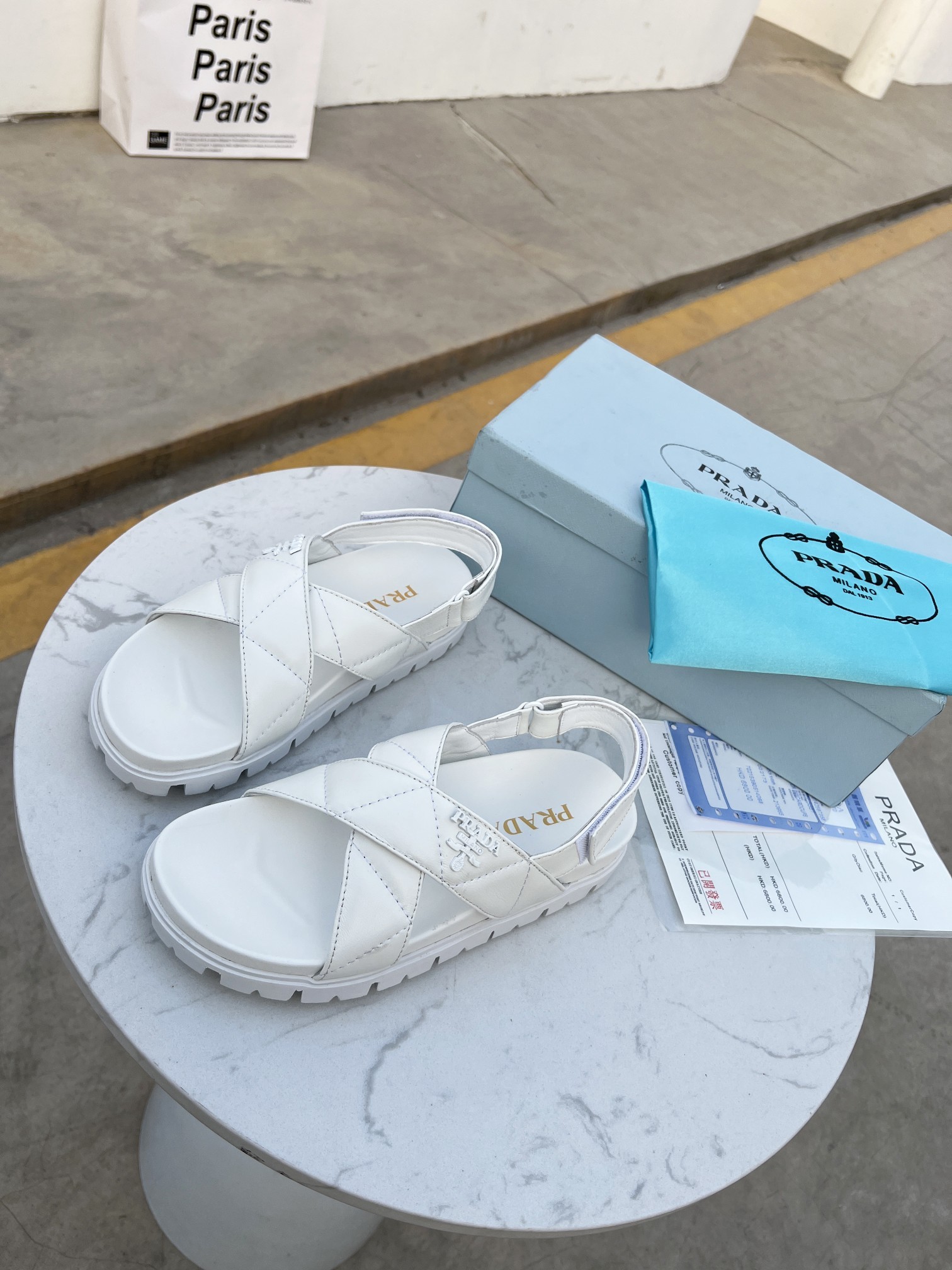 Prada Quilted Nappa Flatform Sandals White For Women 1.4in/35mm Prada 1XZ749_038_F0009_F_035