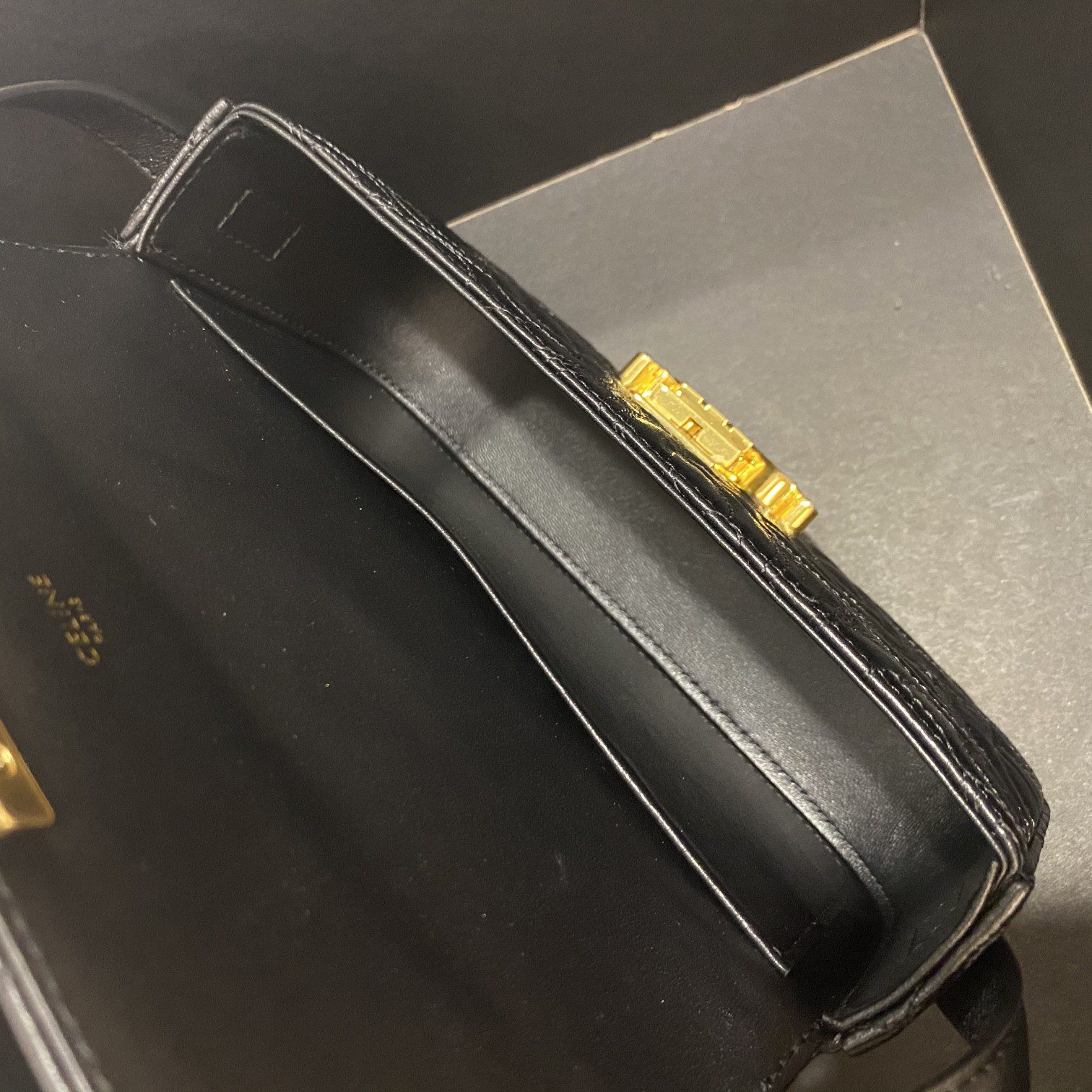 Celine Triomphe Shoulder Bag In Quilted Triomphe Lambskin Black For Women 8in/20cm 194143EF4.38NO