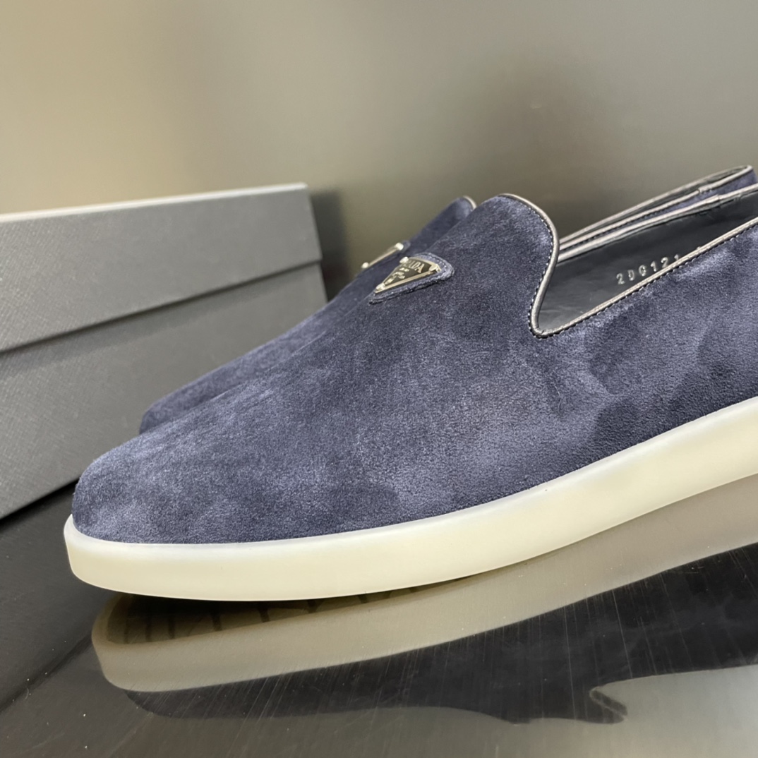 Decorated with the enameled metal triangle logo introduced for the first time on trunks designed by Mario Prada in 1913, these refined slippers are characterized by a minimalist, versatile design.
