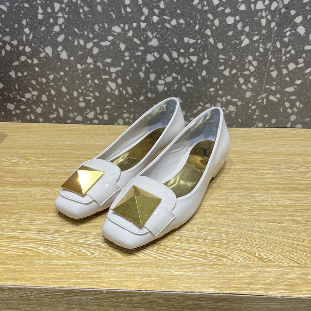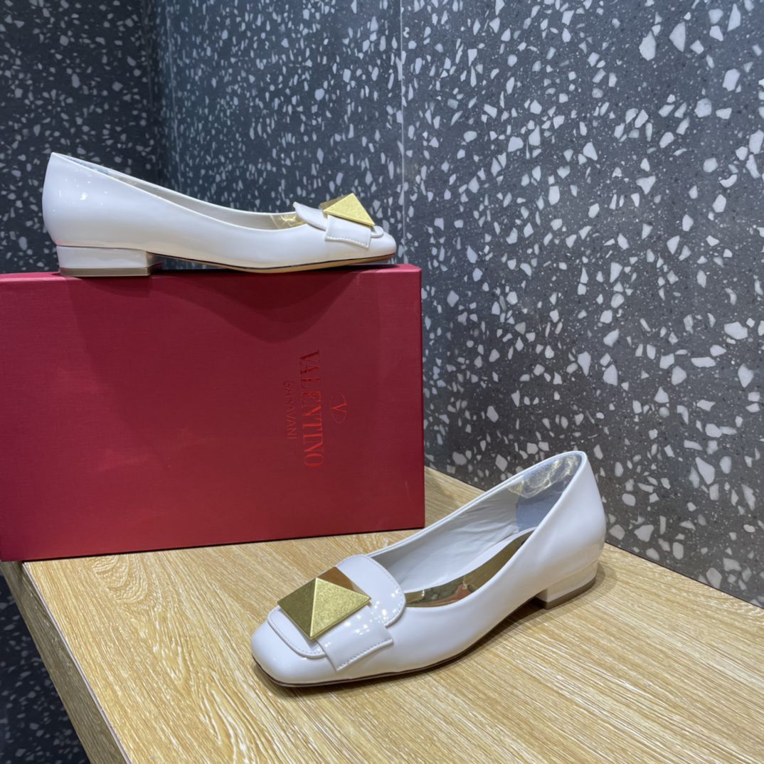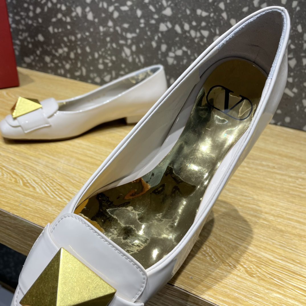 Valentino Garavani One Stud Patent Ballet Flats White For Women